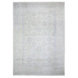 10'1"x14'4" Silver Chalice, White Wash Peshawar With Khotan Design, Organic Wool, Hand Knotted, Oriental Rug FWR448008