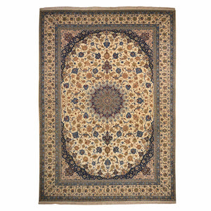 10'1"x14'8" Parchment Ivory, Vintage Persian Esfahan, 400 Kpsi, Good Condition, Clean, Soft And Pliable, Hand Knotted, Wool And Silk On Silk Oriental Rug FWR470118