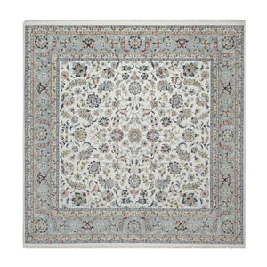 10'2"x10'2" Alabaster White, 250 Kpsi, Nain With All Over Flower Design, Wool And Silk, Hand Knotted, Square, Oriental Rug FWR546474