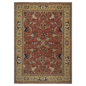 10'1"x14'2" Brick Red, Antiqued Fine Heriz Re-creation With All Over Vines Design, Hand Knotted, 100% Wool, Vegetable Dyes, Soft Pile, Denser Weave, Lush And Plush, Oriental Rug FWR548406