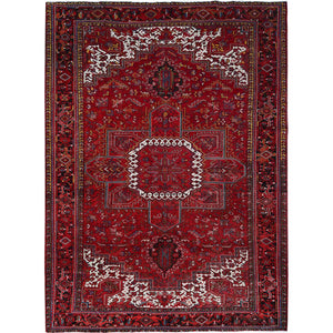 10'2"x13'8" Coral Red, Serapi Heriz With Large Medallion Design, Aryana Collection, Vegetable Dyes, Soft Pile, High Mountain Wool, Hand Knotted, Densely Woven, Oriental Rug FWR6564