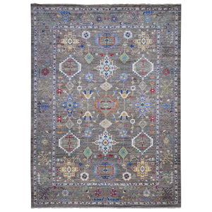 10'2"x13'6" Light Green, Extra Soft Wool Hand Knotted, Armenian Inspired Caucasian Design 200 Kpsi, Vegetable Dyes Dense Weave, Oriental Rug FWR495678