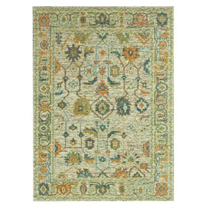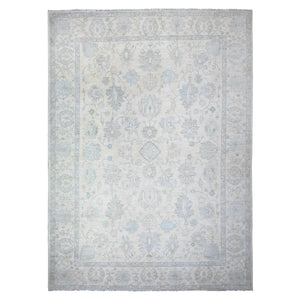 10'2"x14' Frost Ivory With Turquoise Blue And Green, Hand Knotted, Oushak Weave And Design, Pure Wool, Lush Pile, Oriental Rug FWR479682