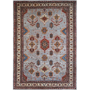 10'2"x14' Koala Gray And Dove White, Afghan Super Kazak With Geometric Medallions Design, Hand Knotted, Pure Wool, Denser Weave, Oriental Rug FWR521310