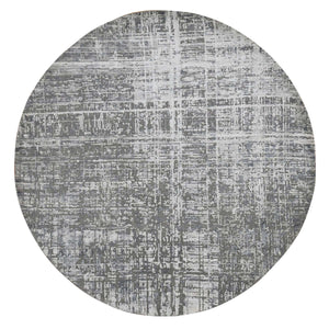10'3"x10'3" Carbon Gray, Wool And Silk, Abstract Design, Hand Knotted, Round Oriental Rug FWR526494