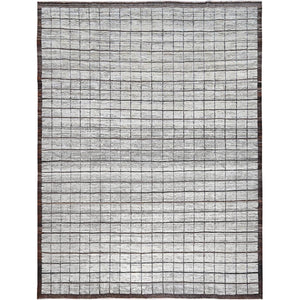 10'5"x13'8" Vista White, Moroccan Weave With Box Design, Tone On Tone, Textured Pile, Undyed Natural Wool, Hand Knotted, Oriental Rug FWR8046