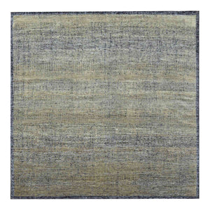 10'x10' Denim Blue, Wool And Silk, Shibori Design, Tone On Tone, Hand Knotted, Square Oriental Rug FWR526008