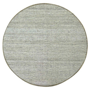 10'x10' Cloud Gray, Tone On Tone, Hand Knotted, Pure Undyed Wool, Round Grass Design Oriental Rug FWR477366