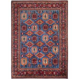 10'x13'4" Coronet Blue, Dense Weave, Vegetable Dyes, Vibrant Wool, Afghan Super Kazak With Geometric Elements, Hand Knotted, Oriental Rug FWR517596