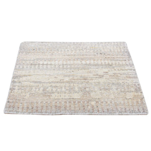 1'6"x1'6" Ivory, 100% Wool, Hand Loomed, Thick And Soft, Modern Box Design, Sample Oriental Rug FWR527670