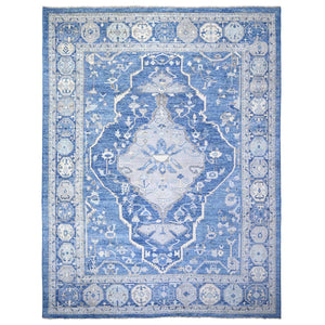 11'10"x15'1" Steel Blue, Anatolian Village Inspired With Large Medallions Vegetable Dyes, 100% Wool Hand Knotted, Oversized Oriental Rug FWR442248