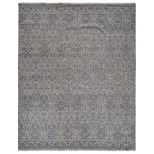 11'10"x15' Hand Loomed Gray Fine Jacquard With Sickle Leaf Design Wool And Plant Based Silk Oriental Oversized Rug FWR380880