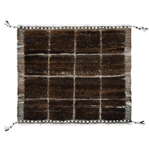 1'8"x2' Chocolate Brown, Natural Undyed Wool, Moroccan Weave, Grid Design Sample, Hand Knotted, Oriental Rug FWR1470