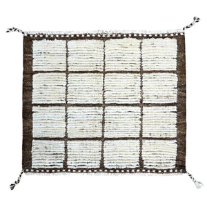 1'8"x2' Chocolate Brown, Moroccan Weave, Grid Design Sample, Natural Undyed Wool, Hand Knotted, Oriental Rug FWR1476