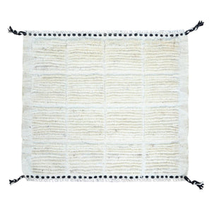 1'8"x2' Daisy White, Natural Undyed Wool, Moroccan Weave, Grid Design Sample, Hand Knotted, Oriental Rug FWR1482