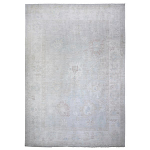 11'9"x17' Gainsboro Gray, Hand Knotted, Faded Out, Natural Dyes With Soft Wool, Afghan Angora Oushak Oriental Rug FWR449676