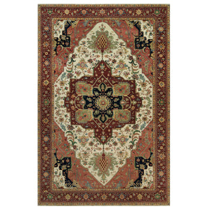 11'9"x18'2" Seedpearl White, Antiqued Fine Heriz, Re-creation Hand Knotted 100% Wool Large Medallion Design, Natural Dyes Densely Woven, Oversized Oriental Rug FWR541746