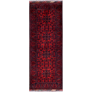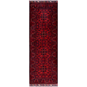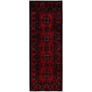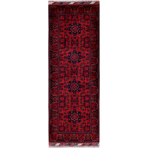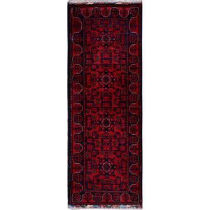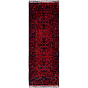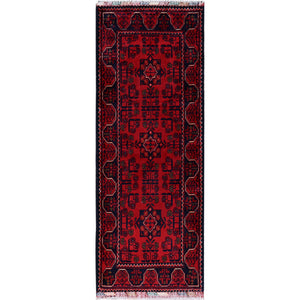 1'9"x5' Angels Red, Hand Knotted, Afghan Khamyab With Geometric Medallions Design, Soft 100% Wool, Natural Dyes, Short & Narrow Runner, Oriental Rug FWR4470