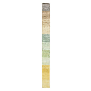 1'x11'2" Brown, Modern Design, Colorful Curtain Blanket Color Shades For Custom Orders, Wool & Silk, Hand Knotted, Narrow Runner, Oriental Rug FWR454008