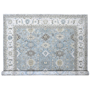 12'x12' Silver Gray Erased Persian Design Wool And Pure Silk Hand Knotted Oriental Square Rug FWR380802