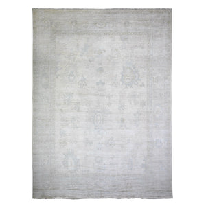 12'x15'10" Smoky White, Soft Wool, Hand Knotted, Afghan Angora Oushak With Faded Out Colors, Natural Dyes, Oversized Oriental Rug FWR528102