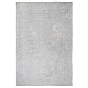13'7"x17' Solitude Gray With Pearly White, Washed Out Peshawar With Ziegler Mahal Design, Hand Knotted Pure Wool, Extra Wide, Oversized, Oriental Rug FWR534876