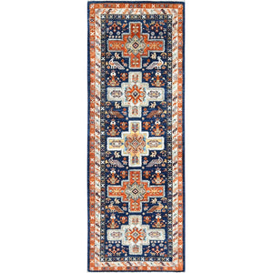 2'1"x5'10" Imperial Blue, Kazak With Tribal Medallions Design, Hand Knotted, Soft And Velvety Wool, Denser Weave, Vegetable Dyes, Narrow Runner, Oriental Rug FWR3006