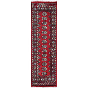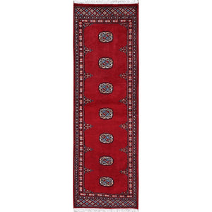 2'1"x6' Crimson Red, Princess Bokara With Tribal Medallions Design, Vegetable Dyes, Soft Wool, Hand Knotted, Narrow Runner, Oriental Rug FWR7758