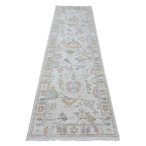 2'10"x10' Pearl White, Afghan Angora Oushak With Cypress Tree Design, Veggie Dyes, Pure Wool, Hand Knotted, Runner, Oriental Rug FWR539268