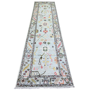 2'10"x11'8" Hand Knotted Gray Angora Oushak With Floral Motifs Soft And Vibrant Wool Oriental Runner Rug FWR338076