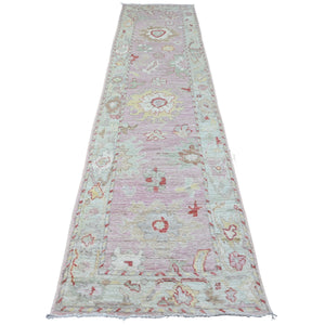 2'10"x11'6" Dust Storm Pink, Soft Wool Foundation, Natural Dyes, Hand Knotted, Village Elements All Over Design, Angora Oushak, Runner Oriental Rug FWR532926