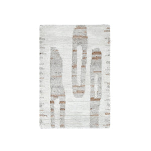 2'2"x3' Bone White, Minimalist Swedish Design, Hand Knotted, Organic Wool, Mat, Sample, Oriental Rug FWR62052