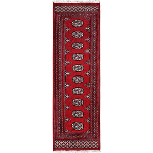2'2"x5'8" Arsenal Red, Princess Bokara With Geometric Medallions, Hand Knotted, Vegetable Dyes, Soft And Vibrant Wool, Short & Narrow Runner, Oriental Rug FWR7776