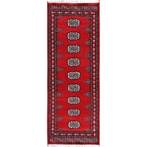 2'2"x5'10" Imperial Red, Princess Bokara With Tribal Medallions, Natural Dyes, Soft Wool, Hand Knotted, Short & Narrow Runner, Oriental Rug FWR7764