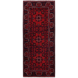 2'2"x5'4" Ruby Red, Afghan Khamyab With Tribal Medallions Design, Pure Wool, Vegetable Dyes, Hand Knotted, Short Runner, Oriental Rug FWR4062