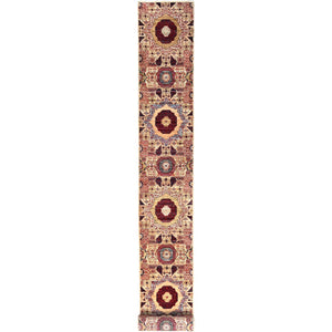 2'3"x24'8" Eggshell White, 200 Kpsi, Soft Wool, 14th Century Mamluk Dynasty Pattern, Vegetable Dyes, Hand Knotted, Xl Runner Oriental Rug FWR515058