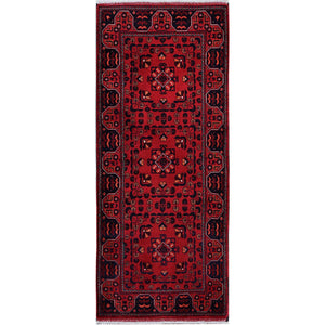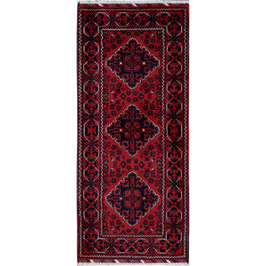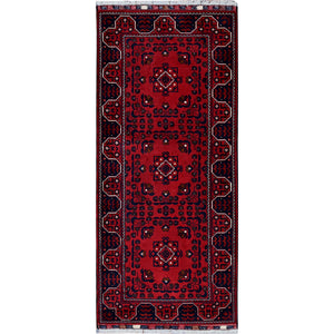 2'3"x5' Crimson Red, Afghan Khamyab With Geometric Medallions Design, Hand Knotted, Soft Wool, Vegetable Dyes, Short & Narrow Runner, Oriental Rug FWR4416
