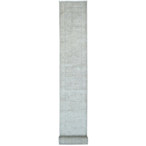 2'4"x19'8" Cloud Gray, Natural Wool Hand Knotted, Afghan Angora Oushak With All Over Design Vegetable Dyes, Xl Runner Oriental Rug FWR439050