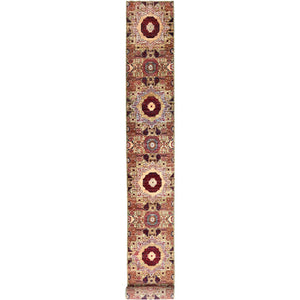 2'4"x24'8" Chiffon White, Natural Wool, Natural Dyes, Hand Knotted, 14th Century Mamluk Dynasty Pattern, 200 Kpsi, Xl Runner Oriental Rug FWR515076