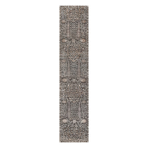 2'4"x12' Bistre Brown, Willow And Cypress Tree Design, Denser Weave, Textured Wool And Silk, Hand Knotted, Runner, Oriental Rug FWR551406
