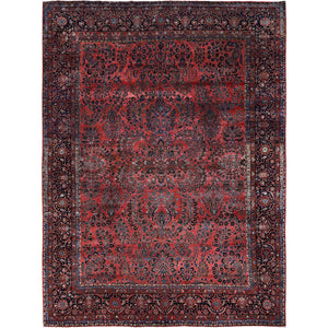 10'3"x13'9" Blush Red, Antique Persian Sarouk, Full Pile And Soft, Sides And Ends Professionally Secured, Hand Knotted, 100% Wool, Oriental Rug FWR8214