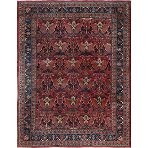 11'3"x14'5" Crimson Red, Antique Persian Bijar Garus, Even Wear, Clean, Sides And Ends Professionally Secured, Hand Knotted, 100% Wool, Oriental Rug FWR8238