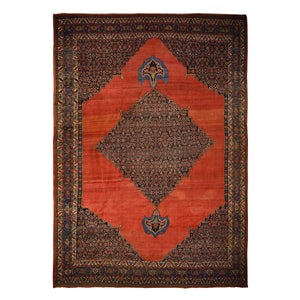 13'6"x19'2" Copper Red, Antique Persian Bidjar, Open Field Anchor Medallion Design, Good Condition, Clean, Abrush, Sides And Ends Professionally Secured, 100% Wool, Hand Knotted, Xl, Oversized, Oriental Rug FWR470472