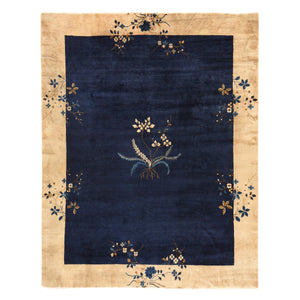 9'2"x11'2" Midnight Blue, Antique Chinese Nichols Art Deco, Full Pile, Good Condition And Clean, 100% Wool, Hand Knotted, Oriental Rug FWR470556
