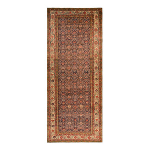 7'2"x19'3" Midnight Blue, Antique Persian Bakhtiari With Repetitive Botanical Design, Gallery Size, Hand Knotted, 100% Wool, Xl, Oriental Rug FWR470802