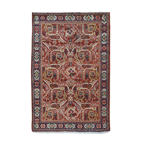 4'10"x5'10" Navy Blue Antique Persian Heriz Smaller Rare Size Natural Wool Good Condition And Clean Hand Knotted Oriental Rug FWR397932