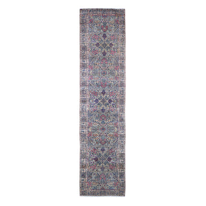 2'8"x11'6" Ivory Antique Persian Kerman Runner Good Condition Multicolor Flower And Vase Design Organic Wool Hand Knotted Oriental Rug FWR401040
