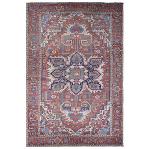 8'10"x11'8" Chili Red, Antique Persian Heriz, Soft And Full Pile, Pure Wool, Sides And Ends Professionally Secured, Cleaned, Hand Knotted, Oriental Rug FWR484656