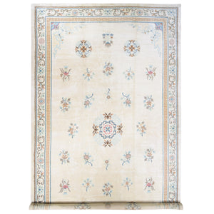 13'9"x23'5" Ivory, Vintage Chinese, Ming Dynasty Design, Hand Knotted, Full Pile, Xl, Sides And Edges Professionally Secured, Pure Wool Oriental Rug FWR484206