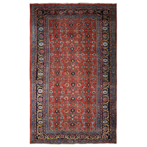 12'1"x19'2" Auburn Red, Antique Persian Serapi Heriz, Hand Knotted, 100% Wool, Some Wear, Clean, Oversized, Oriental Rug FWR469566